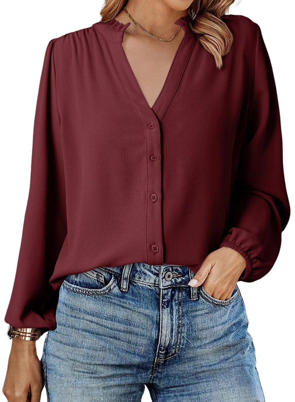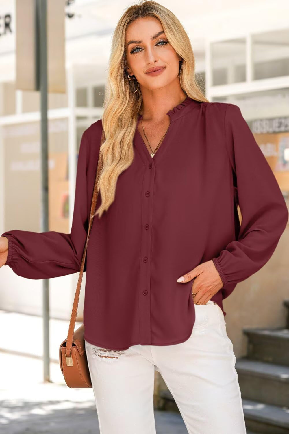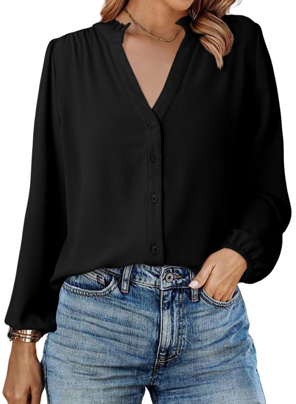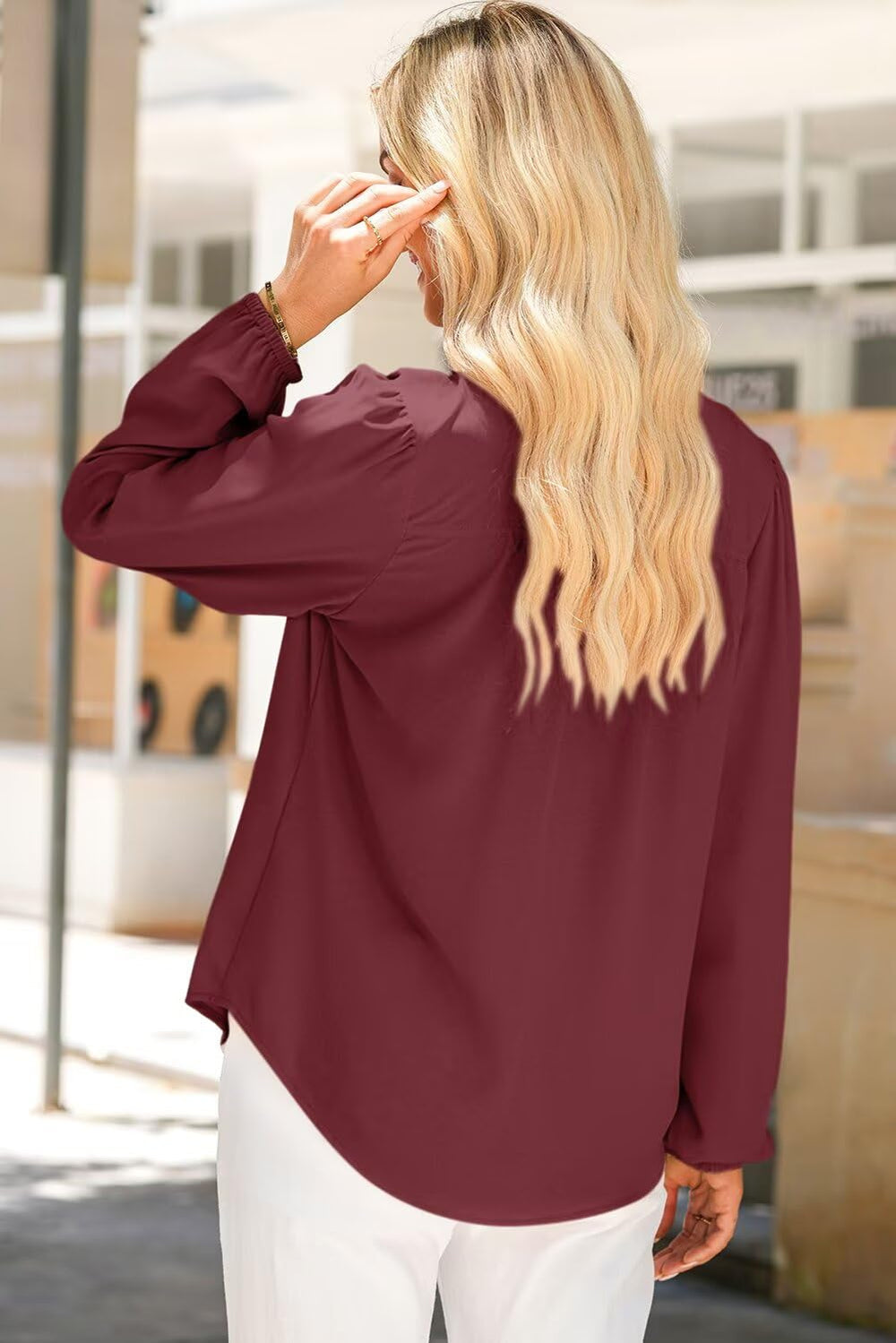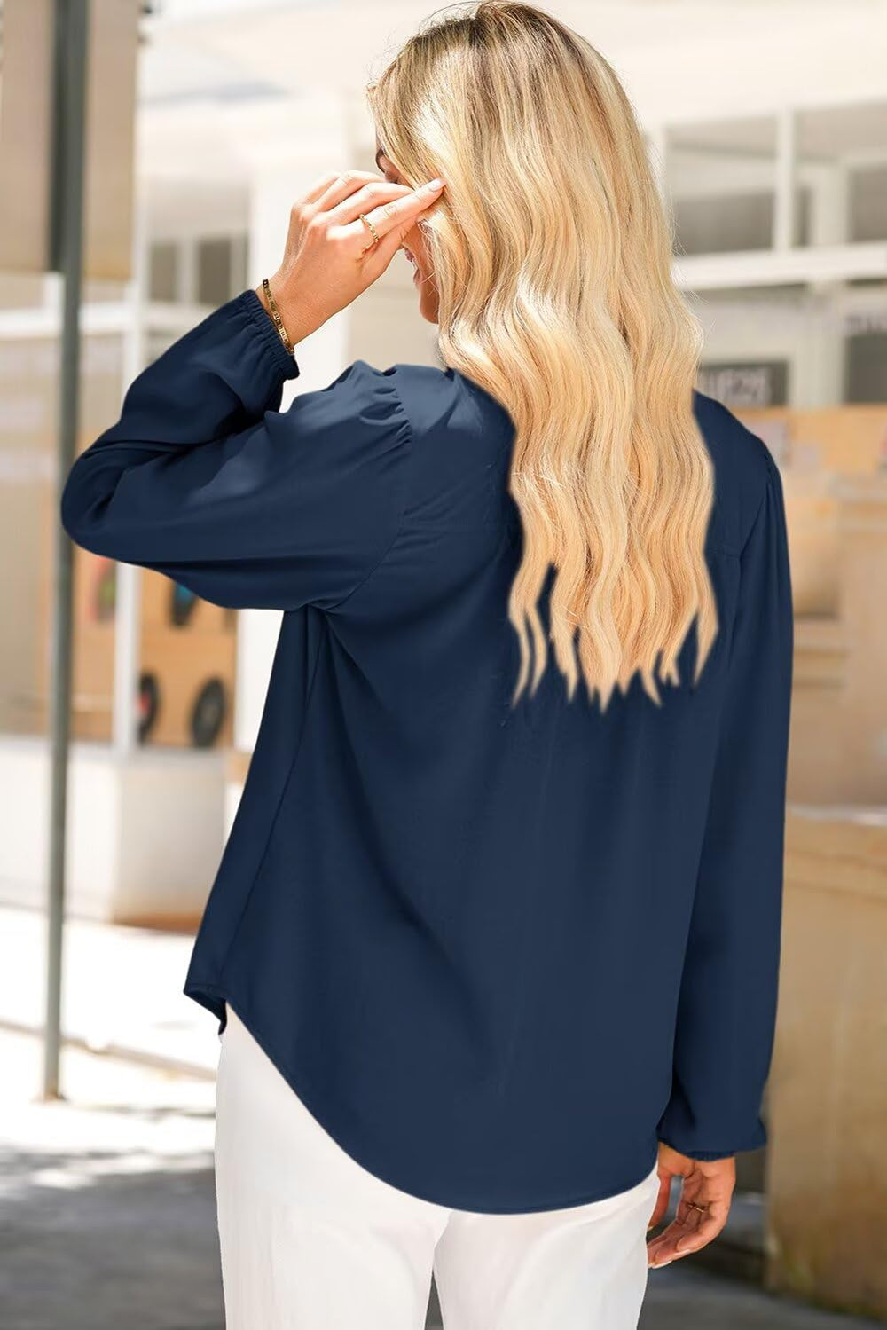 The pleated detailing on the shoulders adds a touch of sophistication, while the cut design on the collar gives it a modern twist. It can be worn with jeans for a casual look or with formal pants and skirts for a professional look.