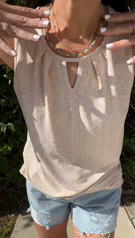 This tank top will become your favorite summer top! Its vintage keyhole neck design and pleated details for a chic and modern look. It has a nice loose fit, ensuring all-day comfort and fit for all body types.