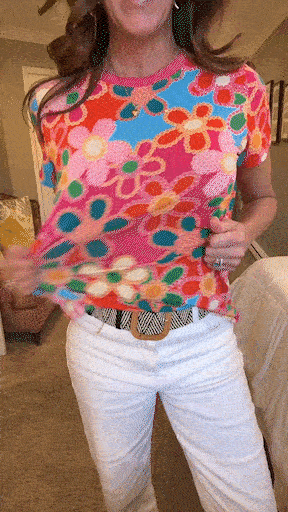 Elevate your wardrobe with this stunning printed short sleeve, featuring a round neck and stretch design. The loose fit allows for all-day comfort, while the floral print adds a fresh and feminine touch.