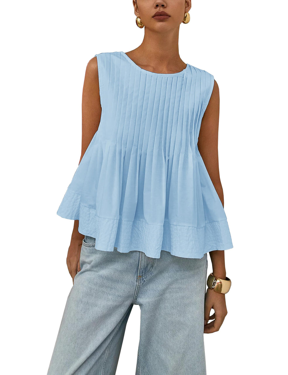 This pleated sleeveless top is made for sunny days and chill vibes. Lightweight fabric + relaxed fit = all-day comfort. Easy to dress up or down. Super comfy, easy to wear, and perfect for summer.