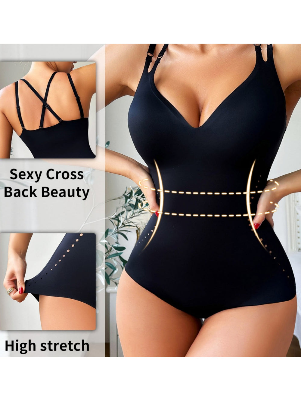 Introducing our Classic Solid Color Seamless Bodysuit, designed to accentuate your curves with a touch of elegance and sensuality. Featuring a solid color design with a backless cross-strap detail and adjustable shoulder straps, this bodysuit offers seamless comfort and support. The deep V-neckline adds a hint of allure to your look. Crafted with seamless and wireless bra technology, it ensures a comfortable and relaxed fit, while the laser-cut mesh design sculpts your waistline, creating a flattering silhouette. Elevate your style with this sexy and versatile bodysuit, perfect for any occasion.