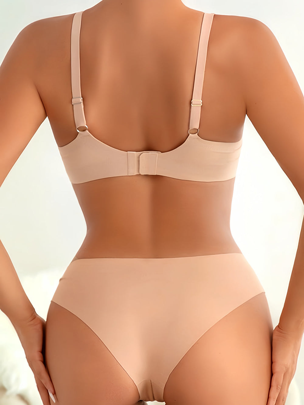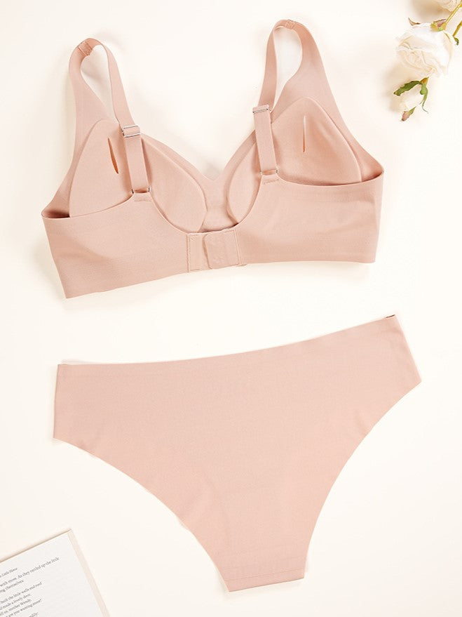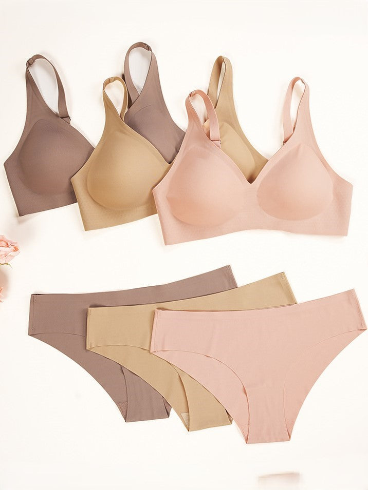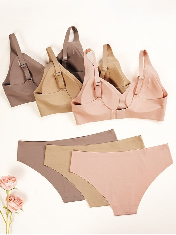 Introducing the Seamless Deep V Sexy Ice Silk Wireless Bra Set, crafted for ultimate comfort and a solid color sleek look. Made from breathable ice silk fabric, this set is designed for a seamless finish under any outfit. The wireless bra features thin adjustable straps and a deep V-neck for a flattering and sexy fit. Paired with seamless panties for a smooth, invisible feel, this set ensures all-day comfort and confidence, perfect for any occasion.