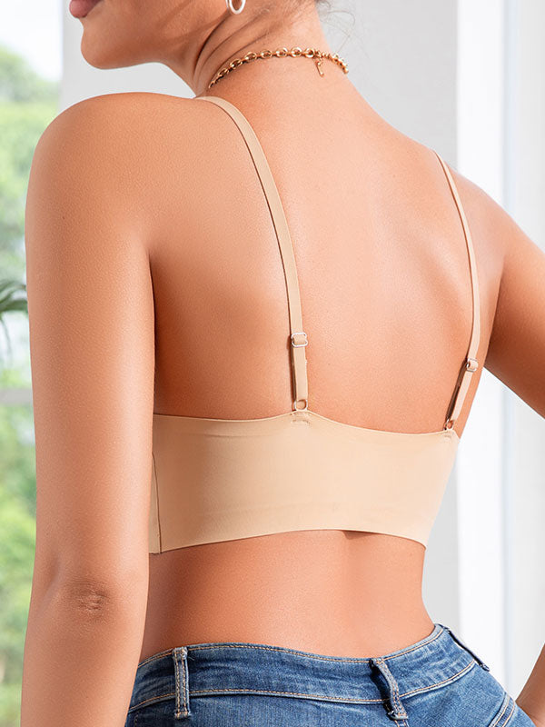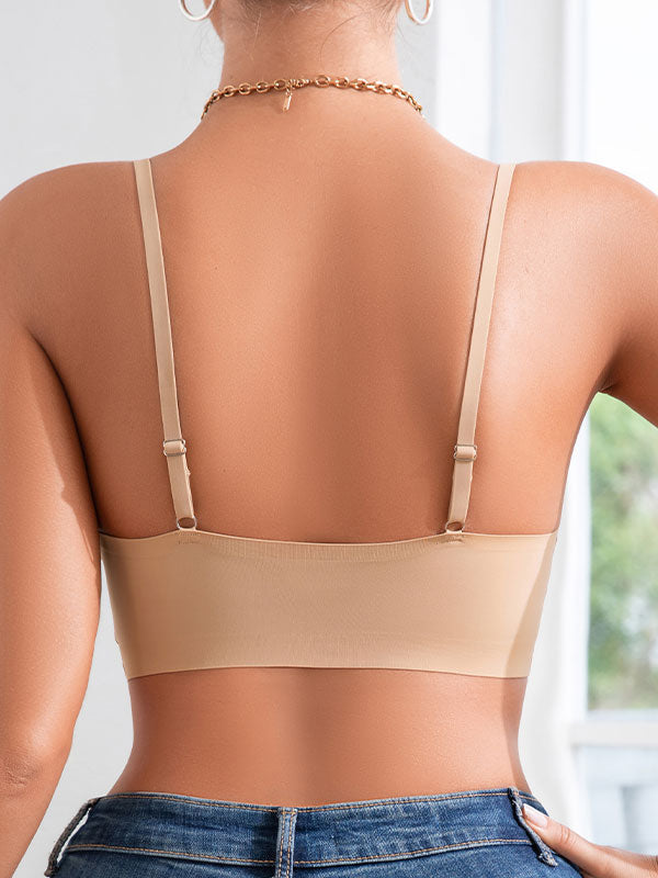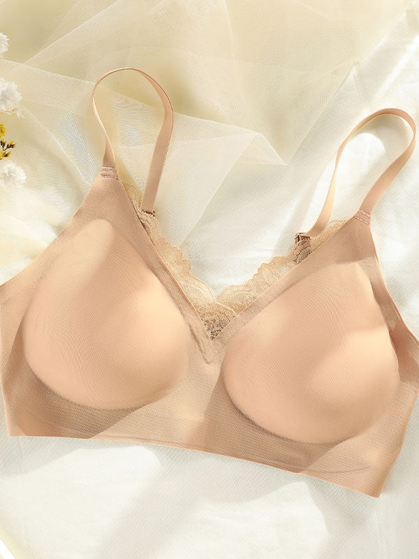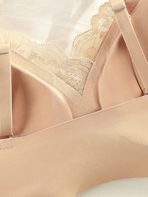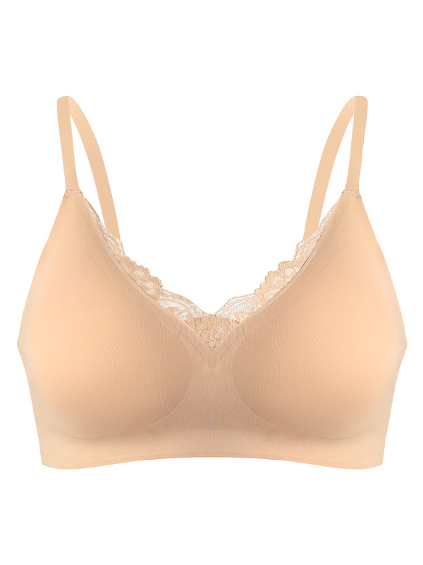 This sexy lace splicing sports bra features seamless technology, offering a soft, breathable feel for comfortable all-day wear. The fixed double straps provide reliable support without the need for adjustments, while the buckle-free design ensures a smooth, seamless fit under clothing. The deep V-neck design and lace detailing add an alluring touch to your wardrobe while maintaining functionality. Its breathable material helps keep you cool during activities, and the back beautifying and shaping features enhance your natural curves. This wireless bra offers the comfort of a bralette, combined with added shaping and support, blending style and function seamlessly.