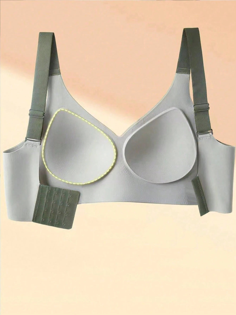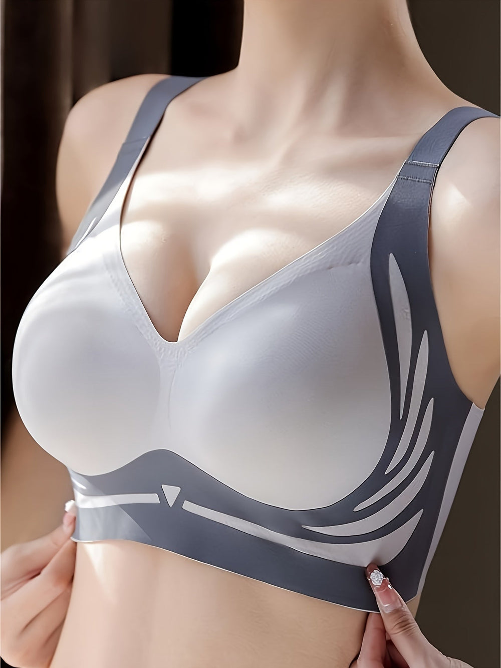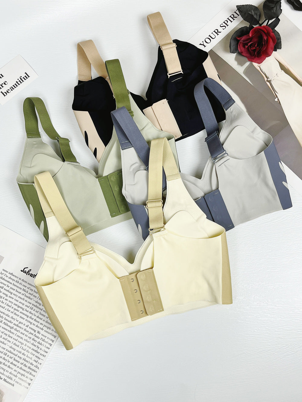 Introducing our Soft Support Push-Up Side Breasts Anti-Sagging Sports Seamless Bra, designed for optimal comfort and support. This color-blocked bra features a seamless, invisible design that ensures a smooth silhouette under any outfit. The adjustable shoulder straps offer a customized fit, and the V-neck adds a touch of elegance. With its push-up support and anti-sagging function, this bra lifts and shapes your bust, making it perfect for everyday wear and sports activities. Experience the perfect blend of style and functionality with this essential piece in your lingerie collection.