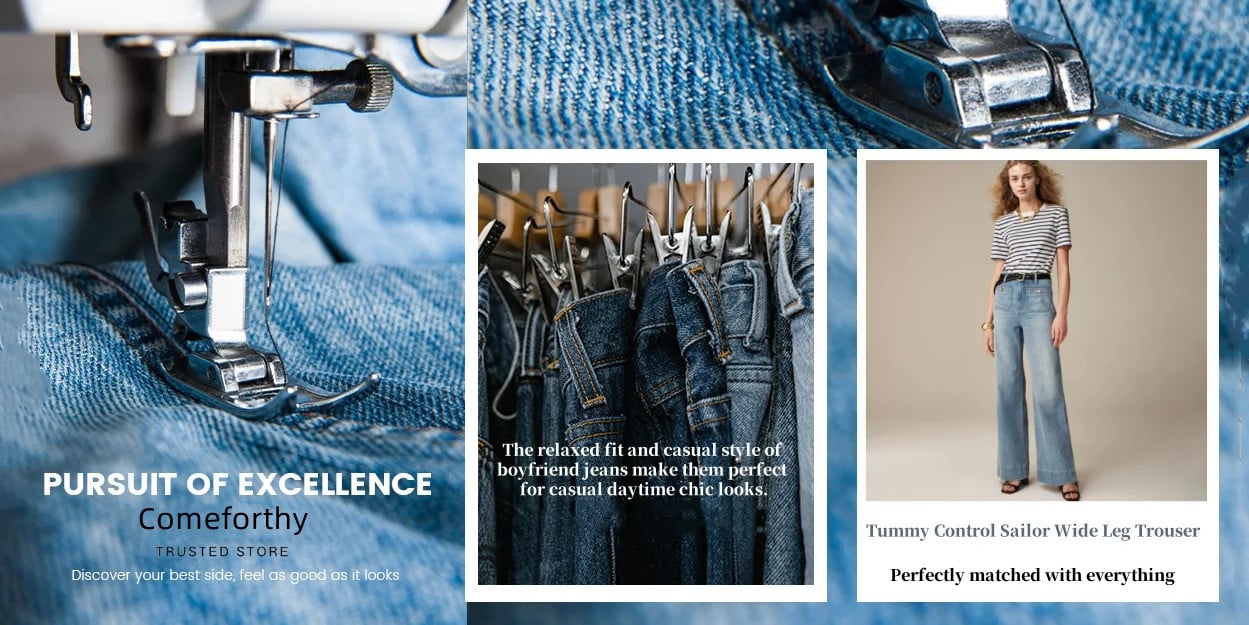 Crafted from premium denim fabric, our Sailor Wide Leg Trouser ensures durability and comfort throughout the day. To maintain its pristine condition, we recommend machine washing in cold water and air drying for best results.