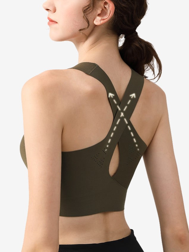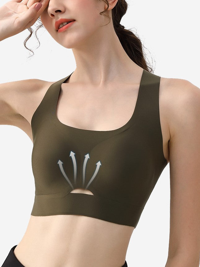 Introducing our "Vest-style Seamless Back Hollow Wireless Sports Bra," perfect for both comfort and style. This solid color bra features an invisible, seamless design with a cross-back for added support and elegance. The hollow, breathable mesh ensures maximum ventilation, keeping you cool during any activity. With its wireless construction, this bra provides a smooth, comfortable fit, making it an ideal choice for your everyday wear or sports activities.