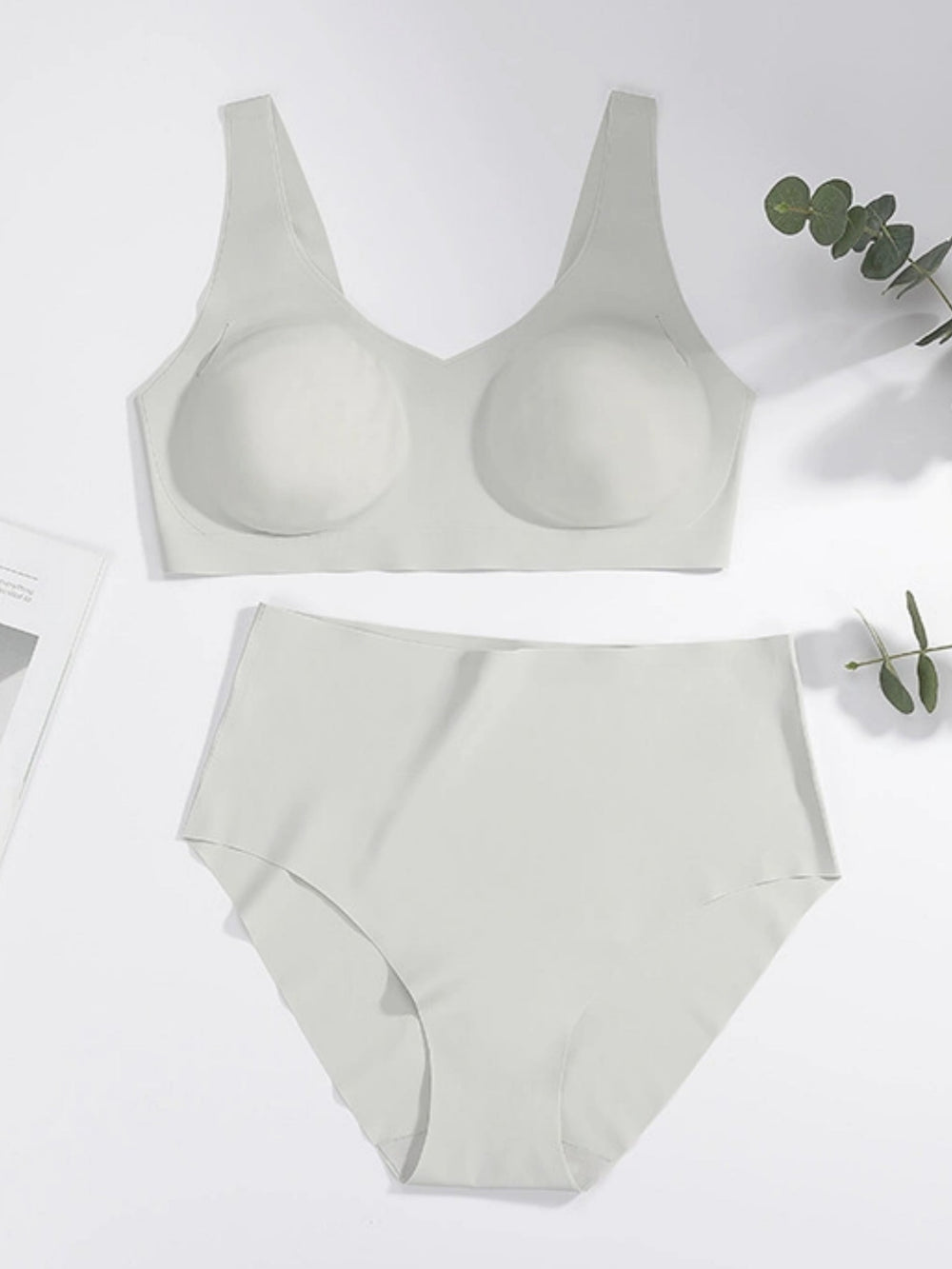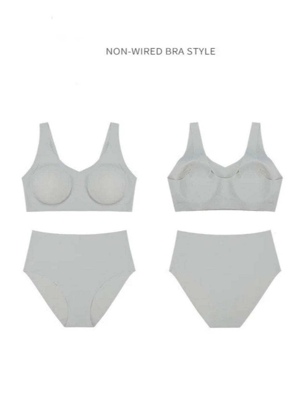 Introducing our Wireless Seamless Shapewear Two-Piece Bra Set, designed for both comfort and style. This set features a solid color design with a backless feature, ensuring versatility in wear. The wireless bra offers seamless comfort, providing ample support and lift, while the double straps add a touch of sophistication. With a deep U neckline, this set exudes simplicity and elegance. Experience the perfect combination of comfort and style with our simple yet elegant lingerie set.