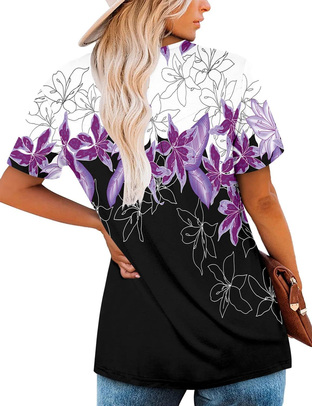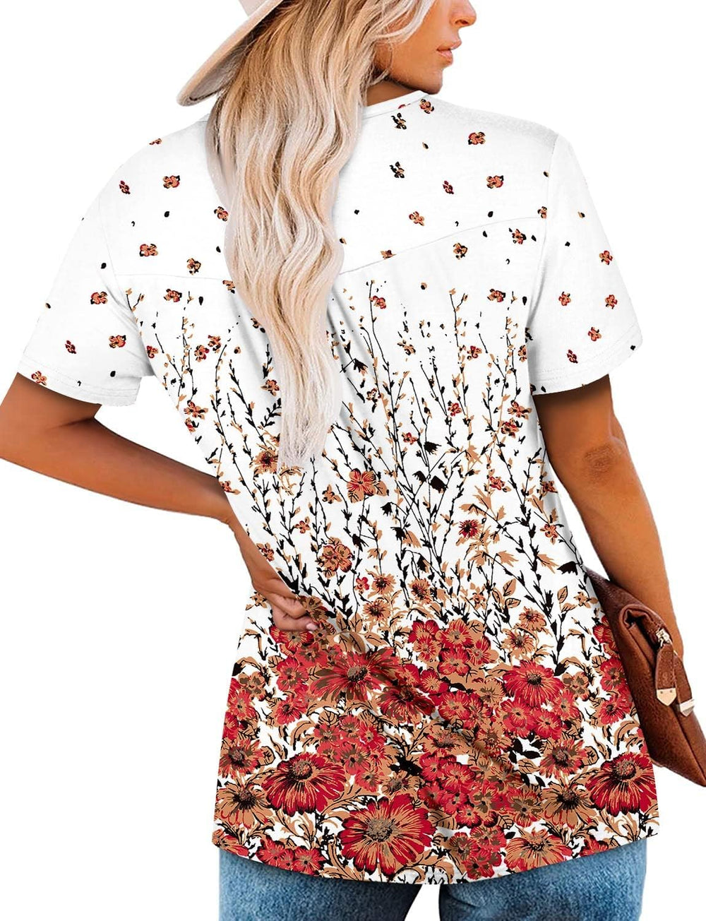 This shirt is flowy and comfortable, the pleated design helps to outline the chest and hide tummy problems, the curved hem adds a stylish touch, and the length is long enough to cover the back, and a variety of floral patterns are available. Pair it with leggings, jeans to create a fashionable look.